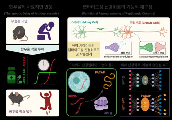 의 해마 속 '모시세포'가 항우울제 자극을 받으면 신경펩타이드 'PACAP'을 생산하고 펩타이드가 주변 신경세포를 재건하는 '회로 재프로그래밍' 과정을 거쳐야 비로소 항우울 효과가 나타난다는 사실을 ... ...